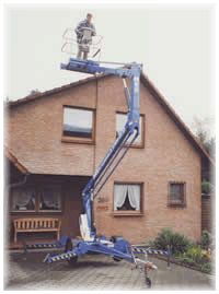 Zum Beispiel montieren wir durch den Einsatz einer mobilen Arbeitsplattform auch an schwer zugänglichen Stellen in Höhen bis zu 12 Metern